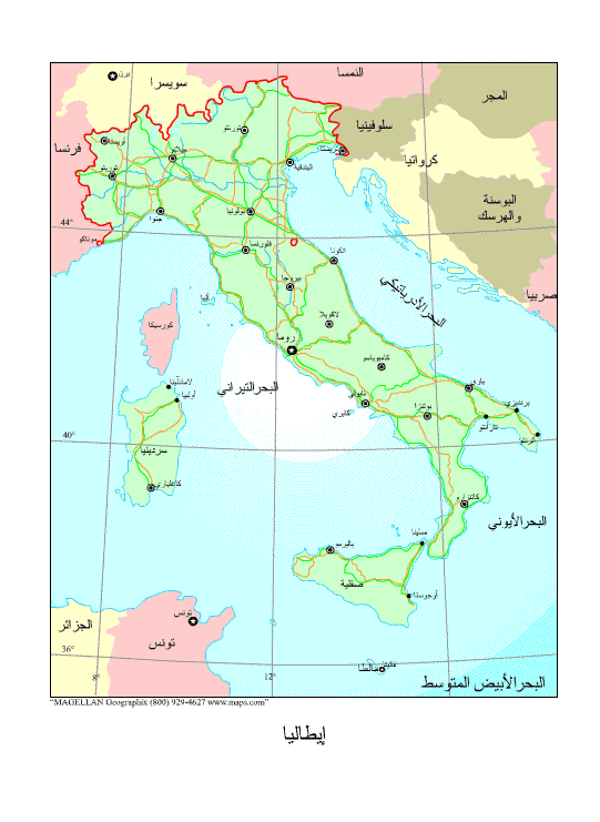 الموقع : تقع في جنوب أوروبا وهي شبه جزيرة تمتد من جنوب أوروبا حتى البحر الأبيض المتوسط تحدها من الشمال الغربي فرنسا ومن الشمال سويسرا والنمسا ومن الشمال الشرقي يوغسلافيا
