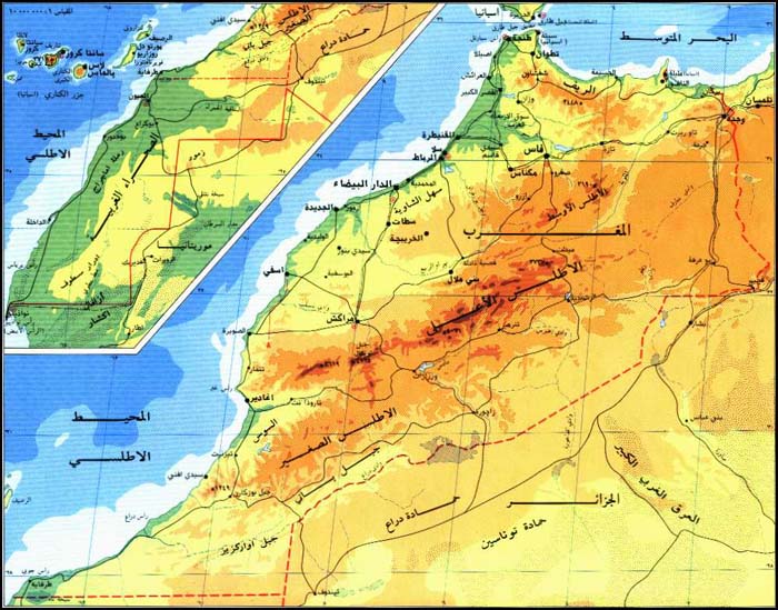 الموقع : تقع في أقصى شمال غرب القارة الافريقيه تحدها من الشمال البحر الأبيض المتوسط ومضيق جبل طارق ومن الغرب المحيط الأطلسي ومن الجنوب الصحراء الغربية ومن الشرق الجزائر